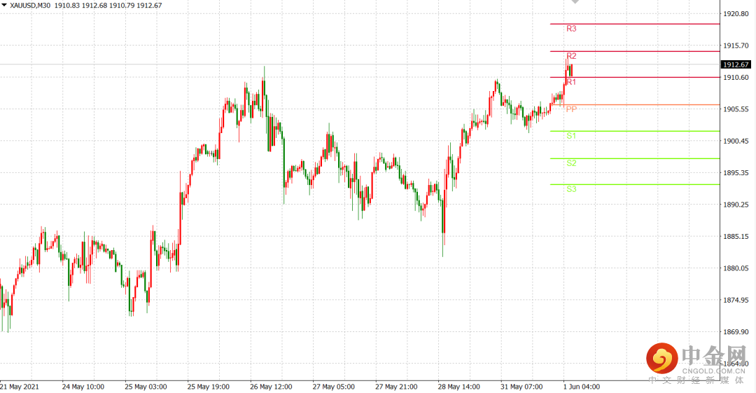 轴心点指标展示基于历史价格走势计算轴心点的经典结果,即一个处于中心的轴心价格,上下各有三个支撑位和阻力位。