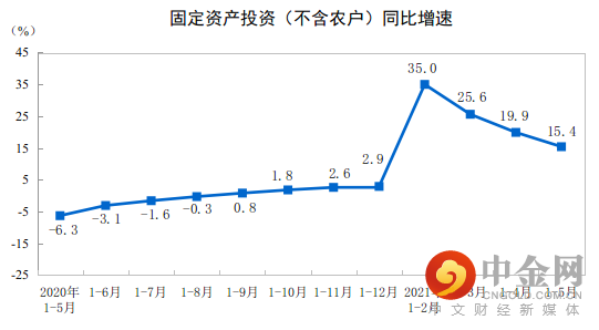 1—5月份,全国固定资产投资(不含农户)193917亿元,同比增长15.4%;比2019年1—5月份增长8.5%,两年平均增长4.2%。其中,民间固定资产投资112472亿元,同比增长18.1%。从环比看,5月份固定资产投资(不含农户)增长0.17%。