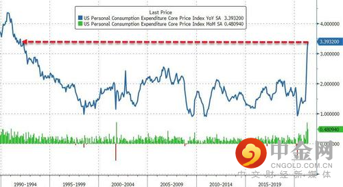 此外,美国5月核心PCE物价指数同比增长3.4%,创1991年以来最高,此前预期同比增长3.4%,而4月的前值为同比增长3.1%。