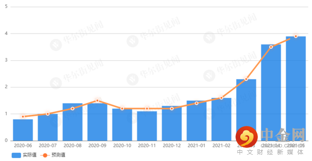 据美国商务部统计,美国5月PCE物价指数同比升3.9%,预期升3.9%,较前值3.6%小幅提高,远高于美联储的官方通胀目标2%。