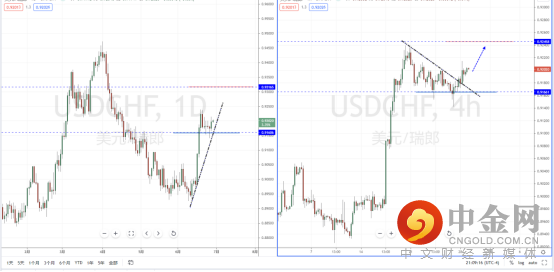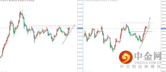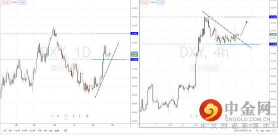 美瑞天图:目前行情在调整后回测水平支撑带0.91606附近起稳,下方有上升趋势线的支撑作用,整体格局继续保持多头方向,从日内4小时级别,价格也在回测后期稳并突破下降趋势线的压制作用。可关注价格小幅调整后继续上行的多头机会,上方目标位置参考0.92458附近。