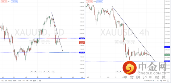 黄金天图:目前行情继续在短期区间内受阻调整,上方有下降趋势线的压制作用,其水平压制带在1794.962附近。整体格局继续处于在空头阶段中,但从日内4小时级别,趋势动能依然不足,继续处于在横盘调整阶段中。可适当关注价格调整回测上方压制后再次走弱机会,下方目标位置参考前期低点附近。