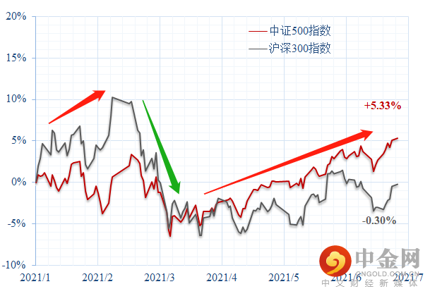 另一方面,从大小盘风格来看,代表中小盘的中证500指数相对沪深300指数有着显著超额收益,大小盘风格有所逆转。