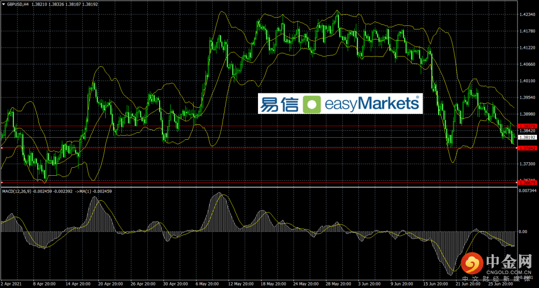 英镑目前形势较为复杂,利空的情况是美元指数表现积极,英国国内疫情出现反复威胁到经济复苏,而利好因素是英镑连日下跌风险得到了一定的释放,有价格低洼优势。日内英镑面临关键点位的考验,下方支撑1.378如果破位或许英镑会加速回落。短线关注英国和美国的6月Markit制造业PMI终值数据结果。