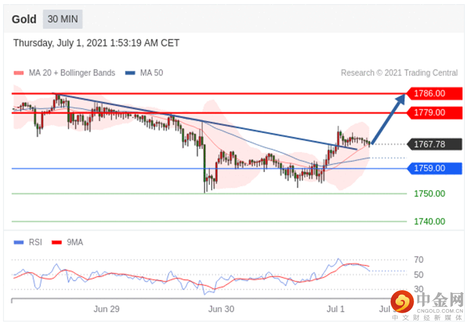 在 1759.00 之上,看涨,目标价位为 1779.00 ,然后为 1786.00 。