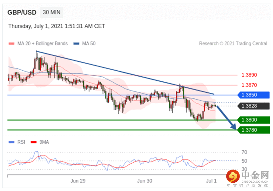 只要1.3850阻力位不被突破,向下跌破1.3800位置的风险很高。