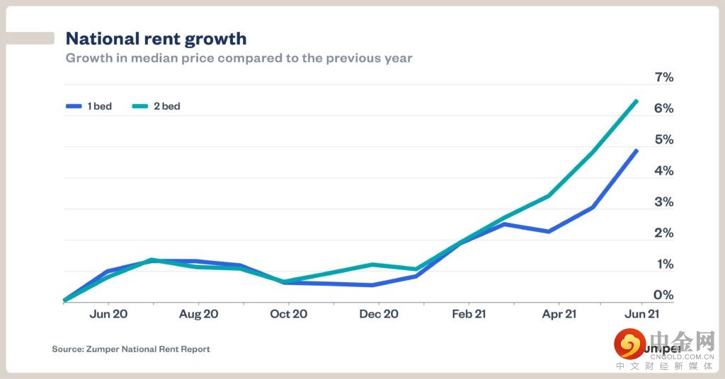 美国低收入住房联盟研究副总裁安德鲁·奥兰德称大约有900万低收入租房者将收入的三分之一用于租房。在租房市场上,根据Zumper的报告全美租金在经济活动回复之后急剧上涨。一居室的租金同比上升4.9%,两居室的租金上升6.5%。在6月份,旧金山一居室的租金涨幅最大,目前已经到了2790美金/月。