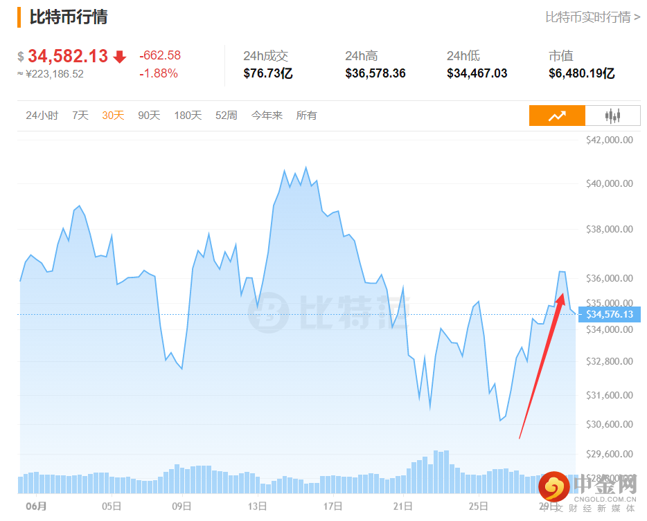 此消息一出,比特币一度跌破3万美元之后,但随后被迅速拉起,连续几日反弹,最高反弹至36000美元附近,反弹幅度高达20%。