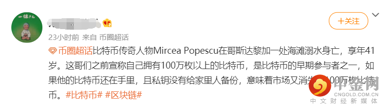 29日,海外媒体确认23日在哥斯达黎加海岸附近溺水身亡的,就是比特币的早期投资人、MPEx 交易所(已停运)创始人 Mircea Popescu。
