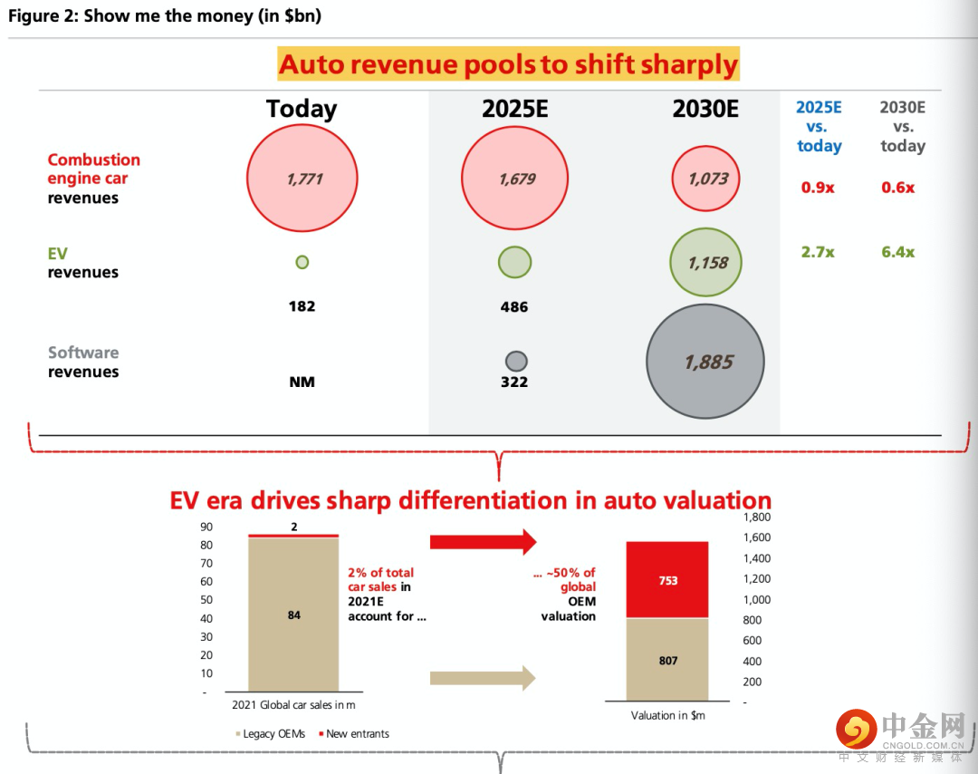 对于那些能够挑战特斯拉领先优势的公司来说,软件将是下一个战场,也是一个重要的收入机会。瑞银也表示,如果特斯拉是新移动世界的苹果(Apple),那么大众和现代(Hyundai)等领先的传统OEM可能会像三星(Samsung)一样,具有巨大估值重估的潜力。