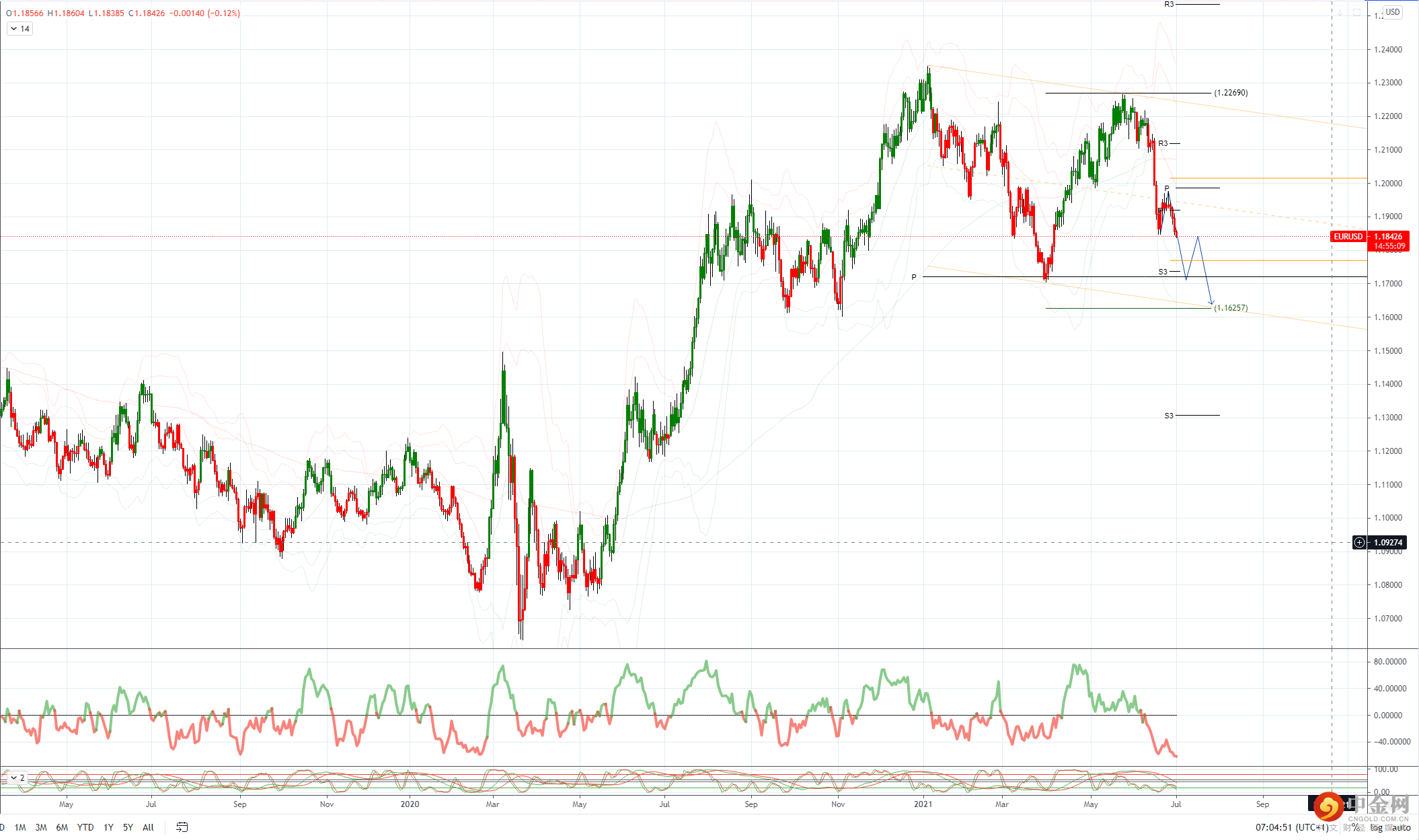 在关键支撑前维持重音 • 美元在美国时段全面走强后,欧元兑美元开盘下跌 0.36% 至 1.1855 • 在 1.1860 交易后,上午重磅交易 • 进入下午,其处于盘中低点 1.1847 • 支撑位在 1.1845/50,它已经三次触底 • 在 76.4 0f 获得更多支撑,1.1704/1.2266 移动至 1.1836 • 跌破 1.1835 目标是 2021 年低点 1.1705 • 阻力位于 10 日均线 1.10 日均线 并缓解压力 • 在周五美国就业数据公布之前,欧元兑美元可能仍将保持高位