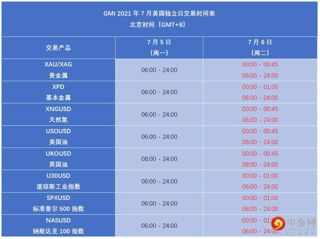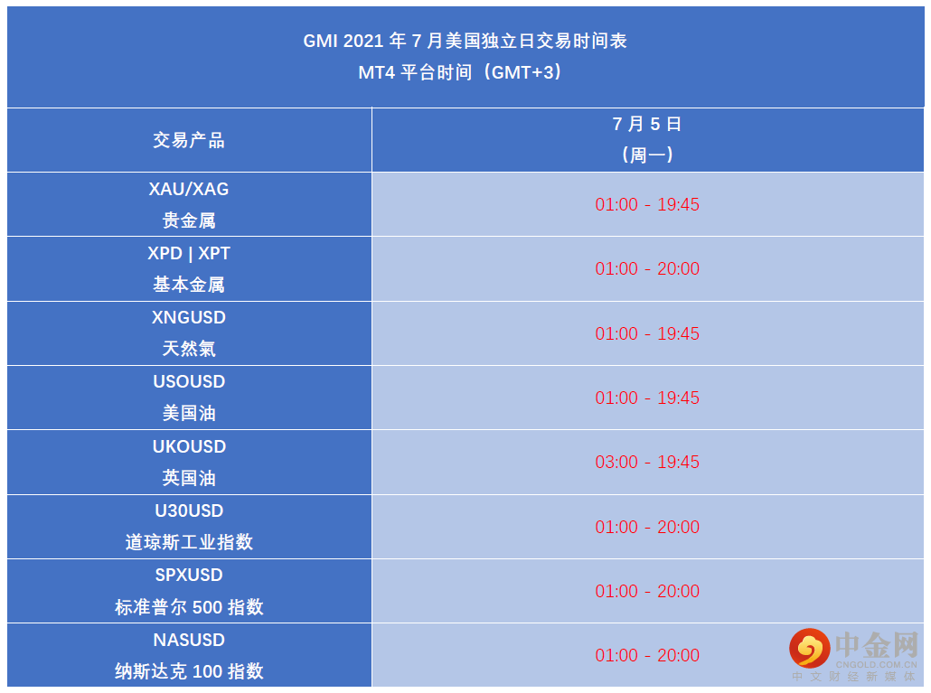 2021年7月4日为美国独立日假期,部分交易品种在此前后的交易时间将有所调整。GMI 特在此发布在此期间产品交易时间调整公告。