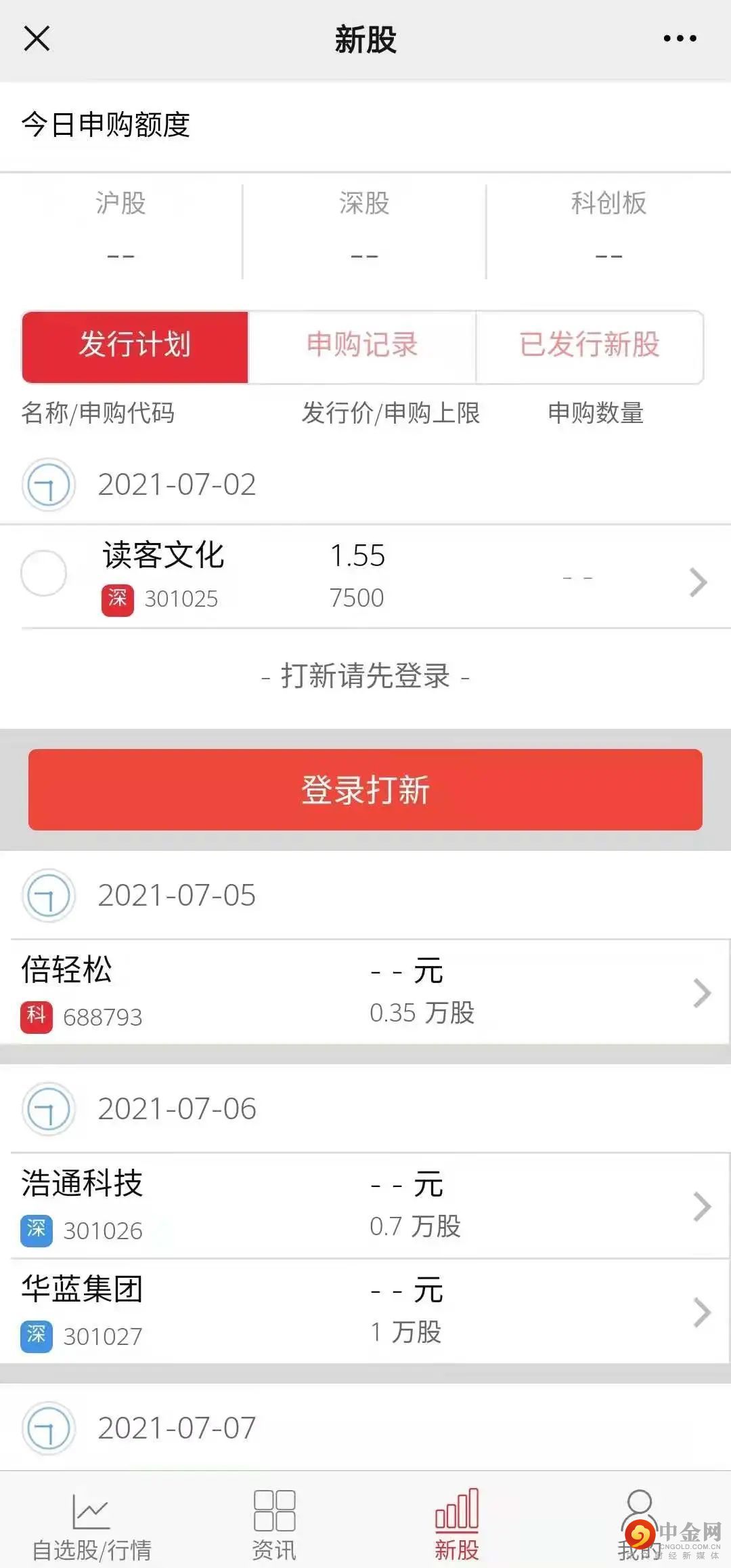 下载国元点金APP,点击【一键打新】