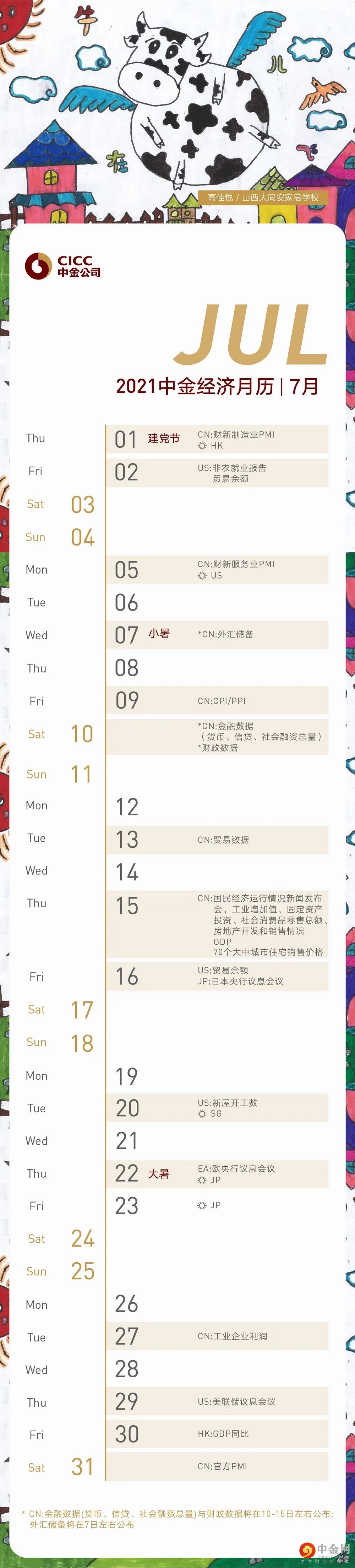 中金经济数据月历 | 2021年07月