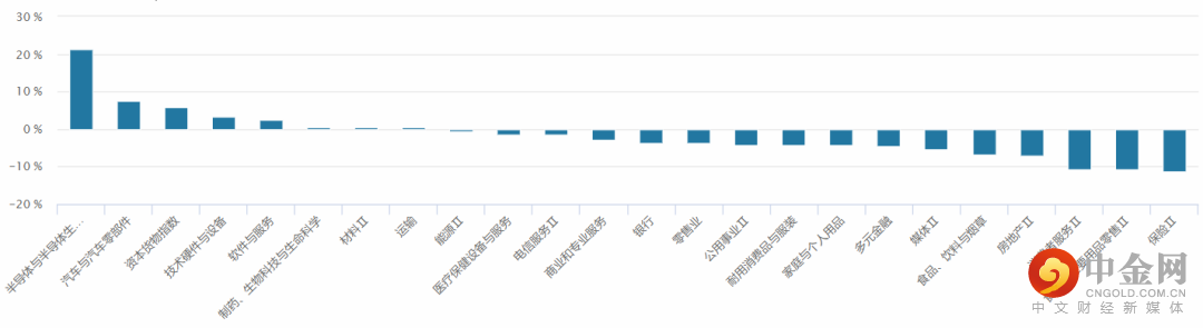 从行业板块表现来看,本月少数板块有所表现。其中,半导体、汽车与汽车零部件、软件与服务表现靠前,保险、食品饮料表现弱势。