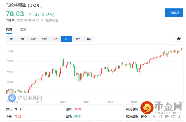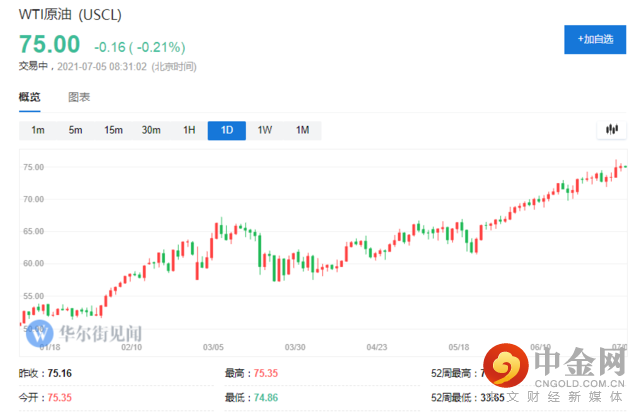 WTI原油期货8月合约收跌0.07美元,跌幅0.09%,收报75.16美元/桶,本周累涨约1.5%。布伦特原油期货9月合约收涨0.33美元,涨幅0.44%,收报76.17美元/桶。