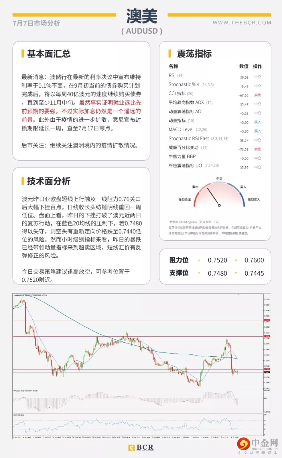 【BCR今日市场分析2021.7.7】FED会议纪要明晨催化市场 拒绝加息澳元冲高回落
