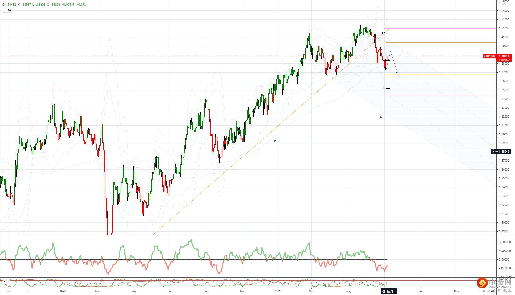 GBPUSD 日内偏差:低于 1.4080 看跌 高于看涨。
