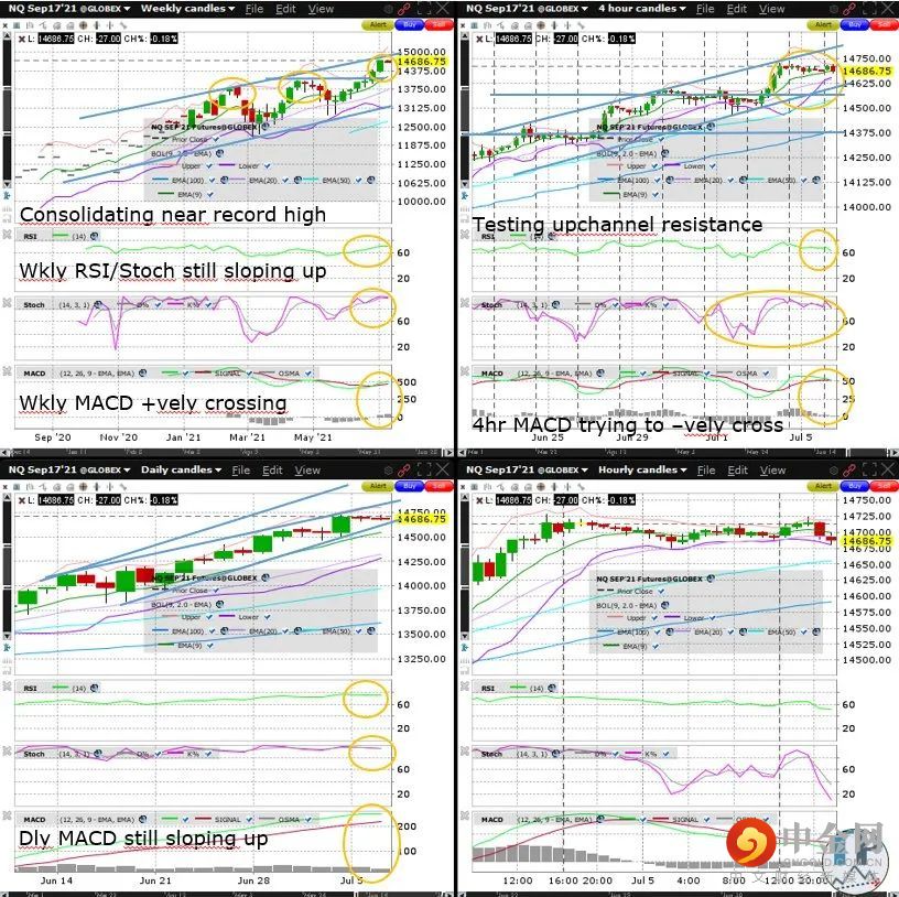 纳斯达克100指数期货(NQ)周线图/日线图/ 4小时图