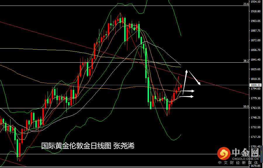 展望今日周三(7月7日):国际黄金亚市早盘开盘先行小幅下跌至1793美元后再度反弹走高至1800美元上方,美债收益率止跌未对其造成压力,美元指数有所偏回落则对其产生利好,另外,技术上100日均线及5日均线和上周三止跌反弹的连续力量都有买盘支撑,故此多头仍表现出坚韧。多头目标仍然是再度突破2075美元而下的趋势线压力,空头目标是再度回落至100日均线下方运行。才能增加其延续性和空间。