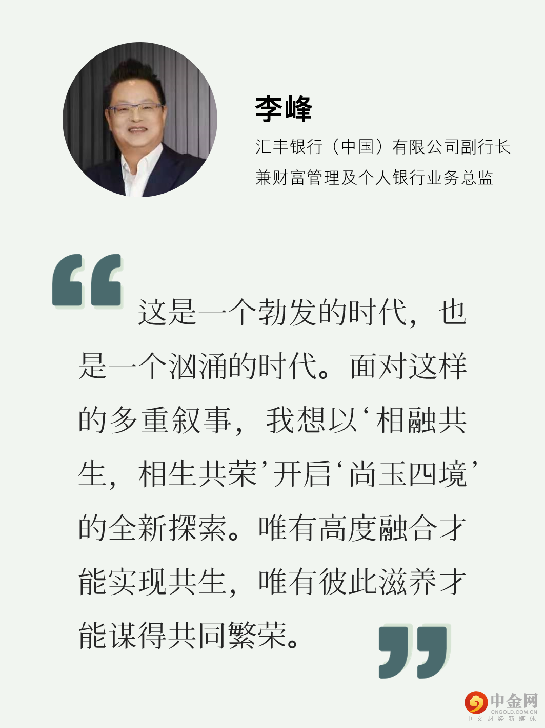 “相融共生,相生共荣”的时代命题贯穿着“尚玉四境”,其内涵也随着每一境越来越深的探索而愈发凸显。在步入“论·事业”这一境时,汇丰尚玉把目光从自我转向周遭的商业世界,开始体察这种共生共荣的力量。而对于当下我们共同面临的“内卷”难题,融合智慧、携手共论“迭代转型”无疑将更有助于问题的解决。