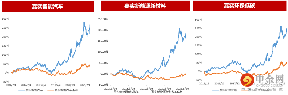 嘉实环保低碳2016-2020收益率分别为:16.50%、33.13%、-32.95%、53.37%、113.67%,同期业绩比较基准收益率为-13.55%、15.80%、-27.99%、19.07%、62.57%