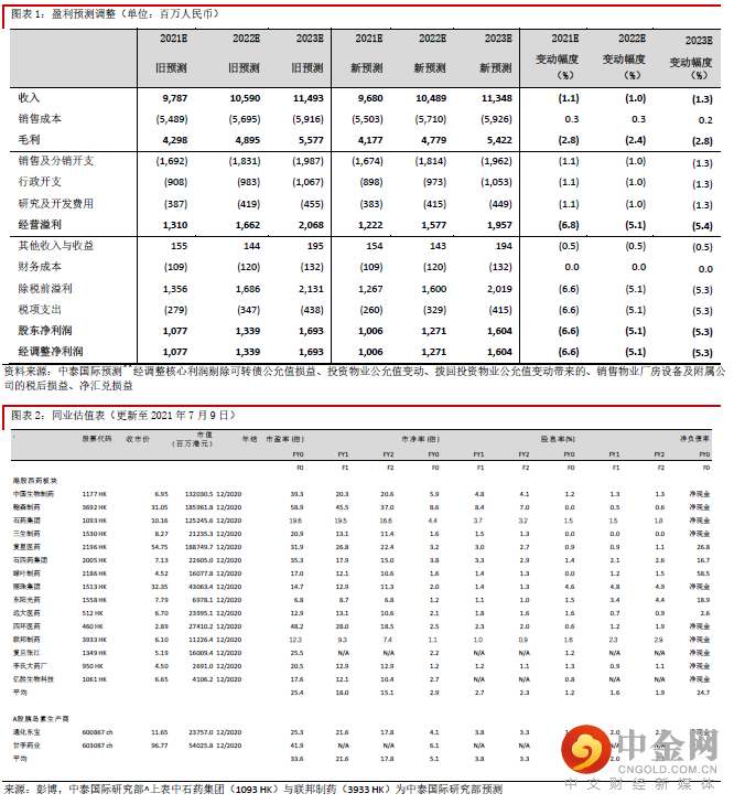考虑到公司原有胰岛素业务销售略受疫情的影响,我们将2021-23E收入轻微下调1.1%/0.5%/0.4%,反映核心业务经营情况的经调整股东净利润下调6.6%/5.1%/5.3%,但由于胰岛素的利润率大幅高于其他产品,公司的甘精胰岛素仍然处于销售放量期,门冬胰岛素即将上市,预计公司2020-23E经调整股东净利润的CAGR仍将高达17.0%,总体看将保持稳健增长。