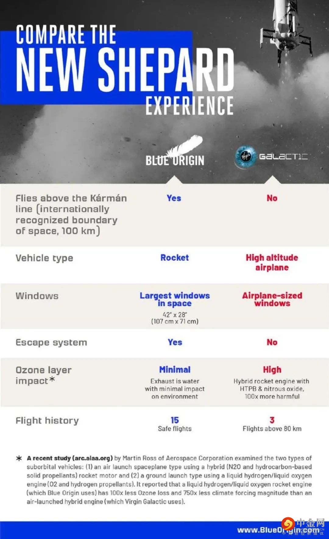 而维珍银河公司“太空船二号”不超过90公里的飞行高度,离卡门线显然还差了一截。就在几天前,蓝色起源官方发布了一张图表,公开diss了作为竞争对手的维珍银河。