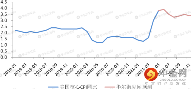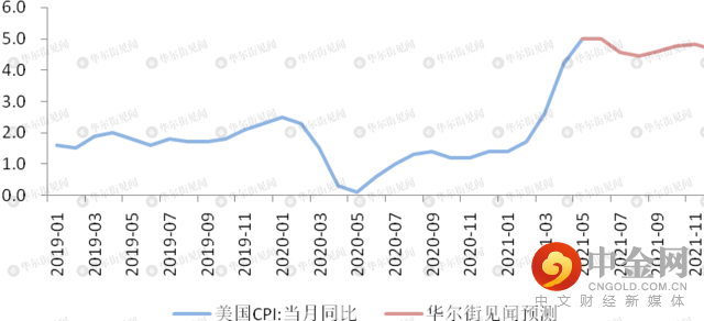 注:上图为华尔街见闻通胀预测的CPI中值为5%,与上月持平;核心CPI中值为3.9%,略高于上月水平。