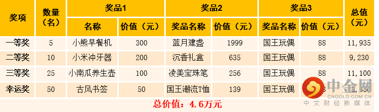 《掘金与致富》前90名奖品清单