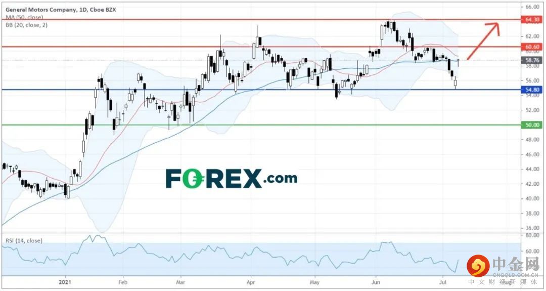 在日线图上,今年到目前为止,通用汽车的股价呈现出「一浪高于一浪」的看涨格局。