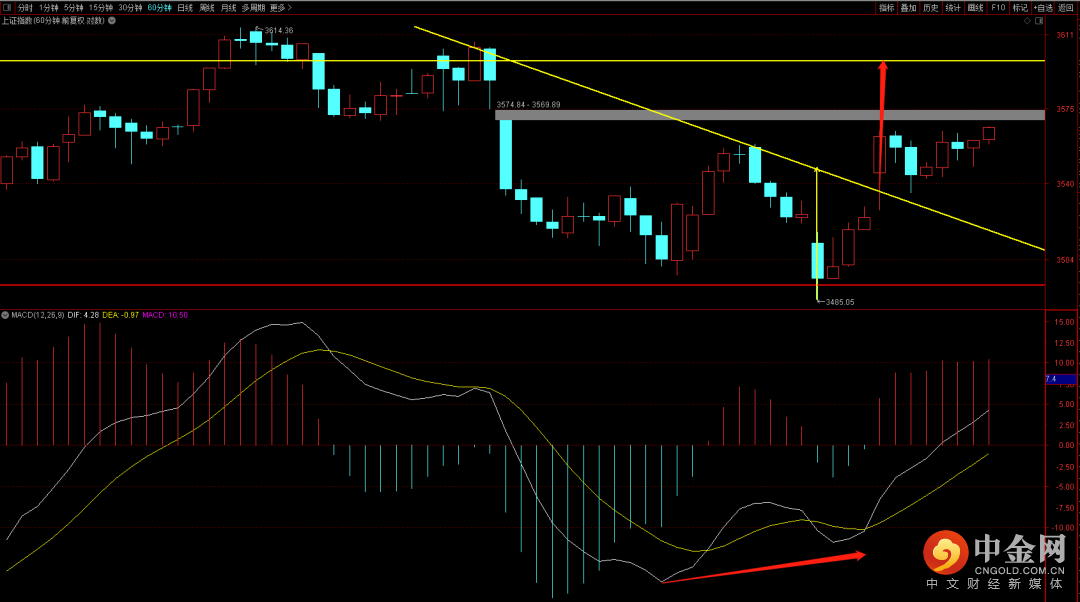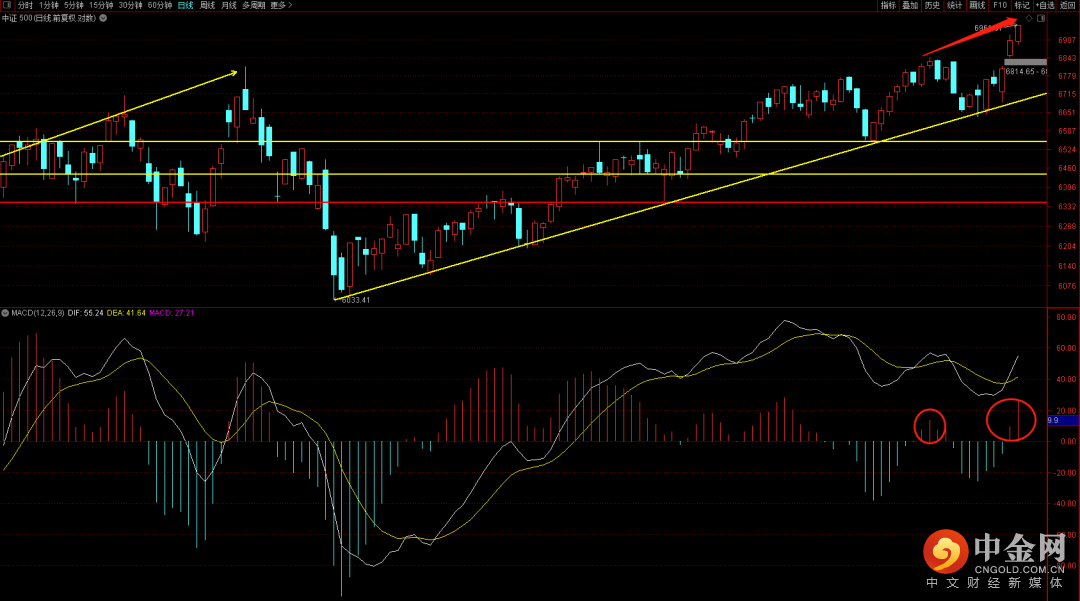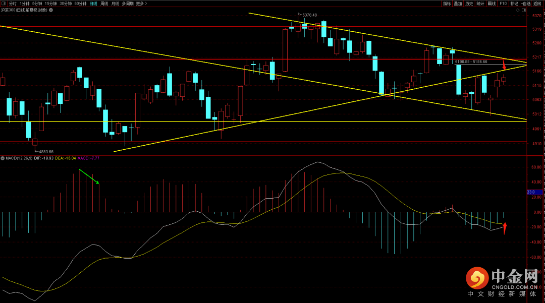 沪深300短期如果出快速突破前期上升趋势线与下降趋势线就可能出现一波拉升走势,但由于这个位置macd的结构在快速拉升结束后就可能出现一段调整走势,注意谨慎去追高,把握低吸节奏点即可。