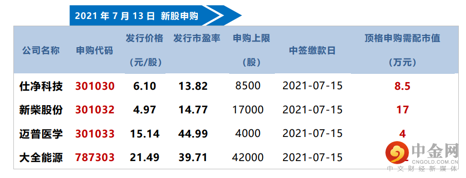 今天又有4只新股啦!