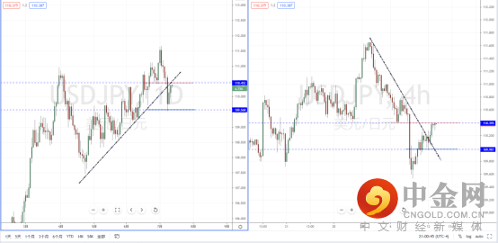 美日天图:短期价格在关键支撑带破位后极端反转,并且价格也正冲击上方水平压制带110.452附近。虽然前期趋势形成头部状态,由于短期价格反复性较大。从日内4小时级别,其趋势趋于偏多,并有效突破下降趋势线的压制作用。可关注价格在关键压制区域的表现,如果继续上行将维持原先多头格局,上方区间目标位置参考110.768一带。