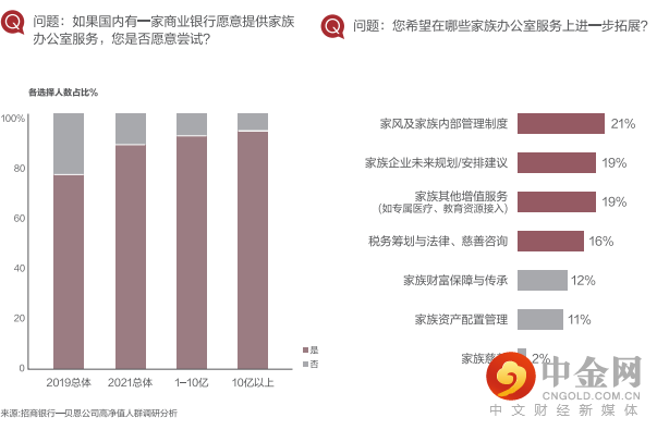 在大环境不确定因素的影响下,高净值人士对财富传承这个需求进一步突显出来。在2019年,约53%的受访高净值人士表示已经在筹备或已开始进行财富传承的相关安排;而在2021年这个比例增至65%。另一方面,财富传承这个理念受到富人群青睐,提前规划与安排财富传承目标与框架逐渐成为新趋势。2021年家族办公室服务的接受度由2019年的不足80%,升至现时近90%,高净值人群对家族办公室服务中对关注的内容从财富打理和安排转变成关注税务法律、企业经营及能力培养等专业意见。