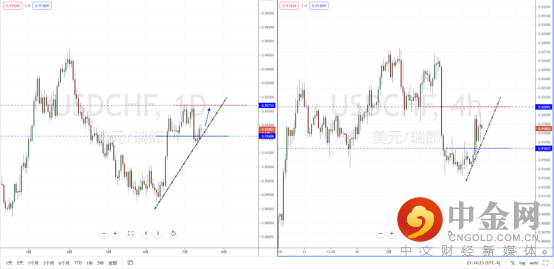 美瑞天图:目前行情在关键趋势节点附近反转起稳上行,在美元指数的催化下扭转整体趋势。短期下方水平支撑带在0.91606一带,并且下方有上升趋势线的支撑作用。从日内4小时级别,价格也收复失地回到压制带0.91633附近。但由于上方空间幅度有限,不宜追多。可关注价格调整后的多头机会,上方目标位置参考0.92711附近。