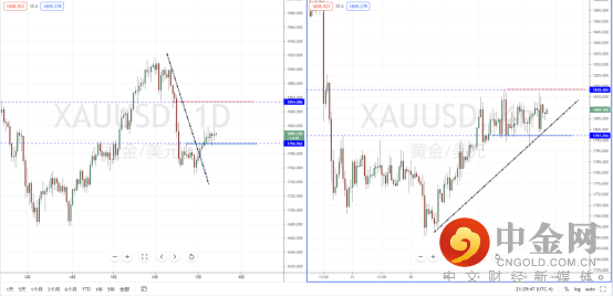 黄金天图:目前行情继续在支撑带附近徘徊调整,下方水平支撑带在1794.962附近。虽然整体趋势趋于偏多,但价格上行动能不足。从日内4小时级别,其趋势一直处于在窄幅区间内调整。近期可继续关注价格测试下方支撑后再次起稳向上的多头机会,上方区间目标位置参考1818.484附近。