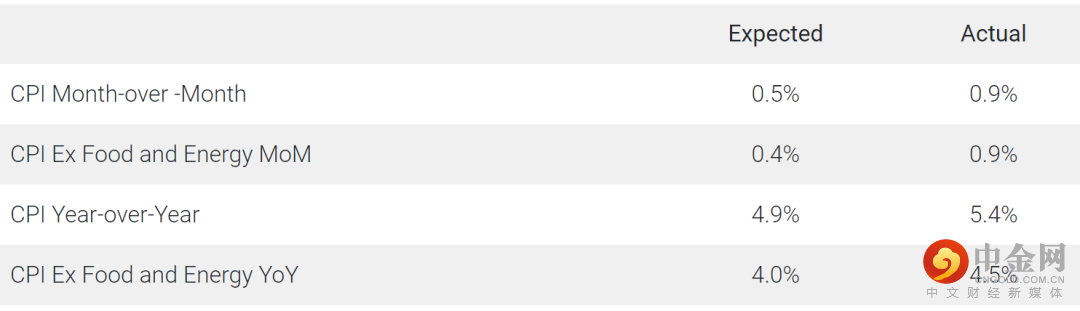 如果您对市场基本对任何新闻消息均积极反应的能力有任何疑问,那么今天市场对CPI数据报告的反应可能会打消您的疑虑。以下是今天早上公布的统计数据: