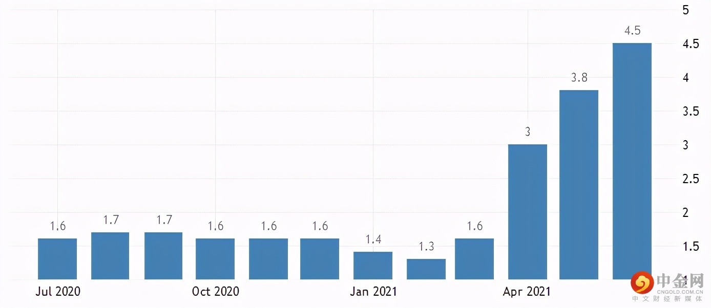 随着进入第三季度,通胀年率理论上应该逐渐走低,但若通胀在接下来两季度时间里继续保持这样的高位,那市场认为美联储所谓的暂时性通胀判断极为可能是错误的。
