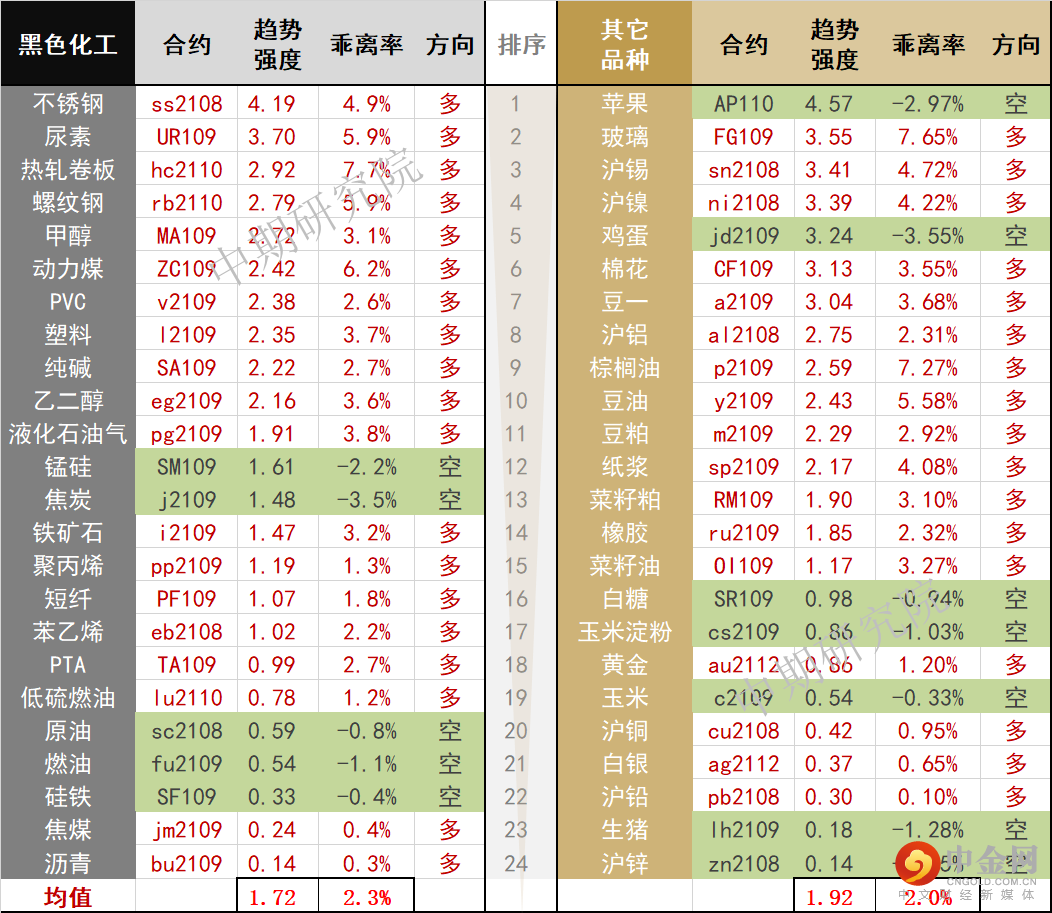 中期商品趋势榜 | 黑色多头仍强,有色延续分化(0713)