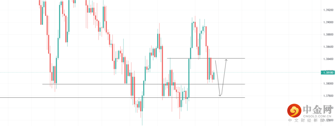 美元指数受提振,英镑下跌,关注1.37769的支撑位置,4小时回调收多即可看多至压力位1.38410,止损1.37641;关注1.38410压力位,4小时受阻收空即可看空至1.37769支撑位,止损1.38546
