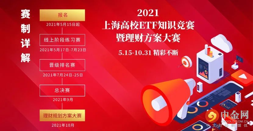 从5月开始,由中国证监会投资者保护局作为指导单位,上海证券交易所、上海证券报联合主办的“2021年上海高校ETF知识竞赛暨理财规划方案大赛”正式启动。本次活动为期5个月,围绕ETF专题学习与竞赛展开,将通过视频课程、讲座、直播、ETF专题知识竞赛、ETF理财规划大赛等形式,帮助高校学子系统学习ETF知识,提前接受理财规划训练。