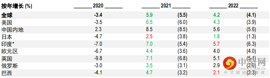 我们最近将我们的2021年全球国内生产总值增速预测从5.5%上调至5.9%,并将2022年预测从4.1%上调至4.2%