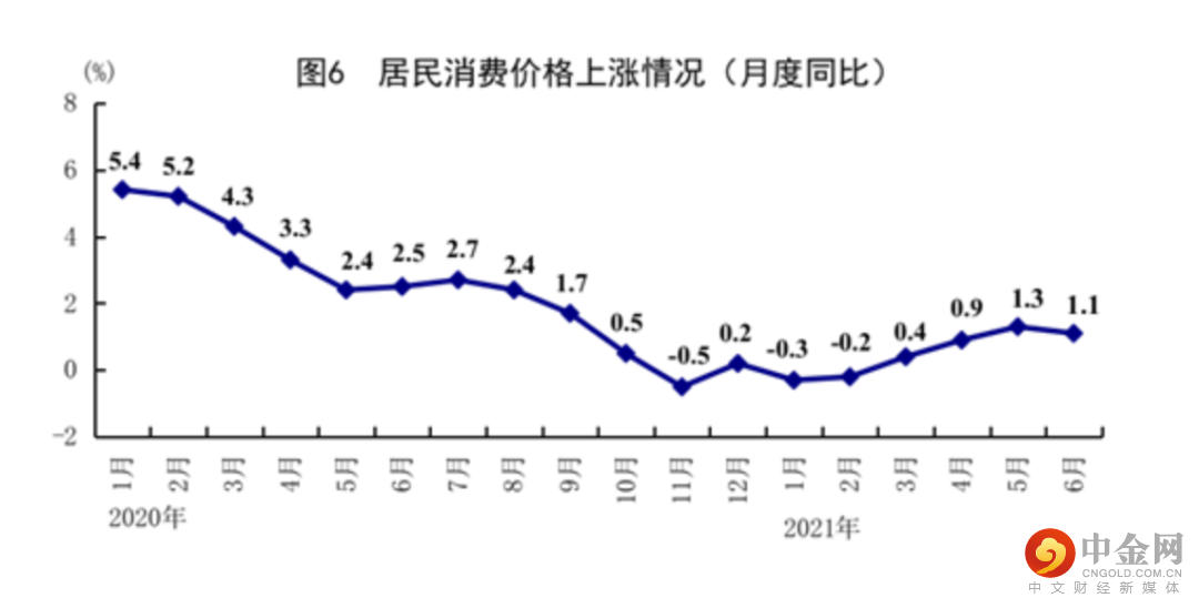 据先期公布上半年物价指标数据显示,上半年,全国居民消费价格(CPI)比去年同期上涨只有0.5%,涨幅较低。6月份CPI同比上涨1.1%,涨幅比上月回落0.2个百分点,为年内首次回落。