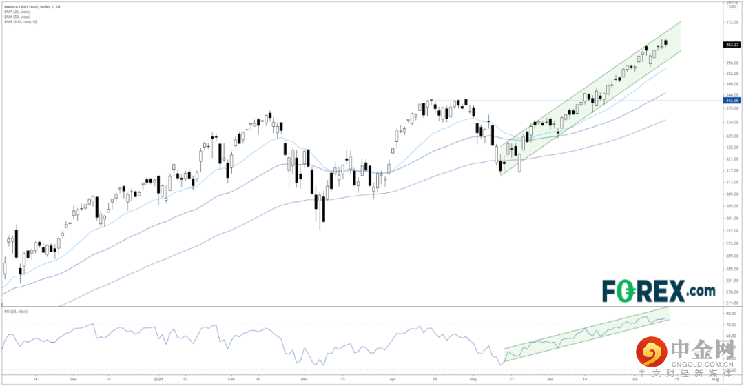 只要上涨通道保持完好,纳斯达克100指数阻力最小的方向仍然是向上