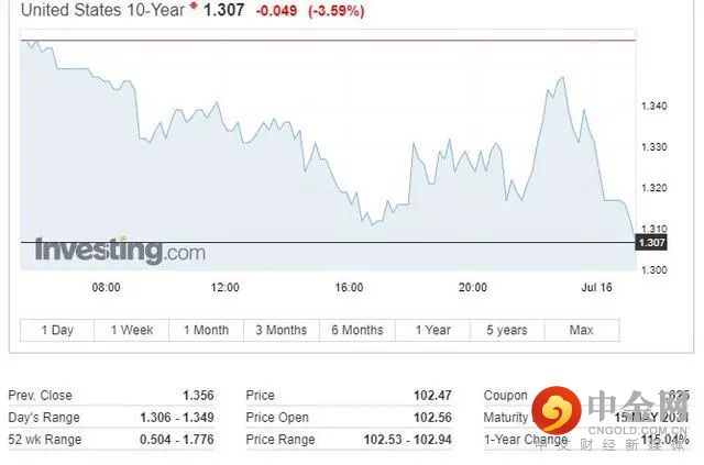 10年期基准美债收益率在听证会结束后维持日内5个基点的跌幅,重新下逼1.30%,回吐本周全部涨幅。
