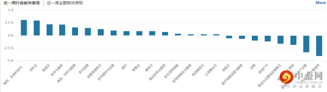 从行业板块表现来看,制药、材料、能源、软件与服务以及食品饮料等涨幅居前,汽车与零部件、半导体、房地产、运输等跌幅居前。