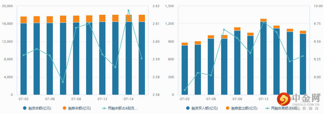 融资融券余额方面,截止7月15日,两融余额 18,082.01亿,占A股流通市值 2.59%。两融交易额 1,088.63亿,占A股成交额9.29%。其中两融余额较前期略有增加,但两融交易额占比有所降低。
