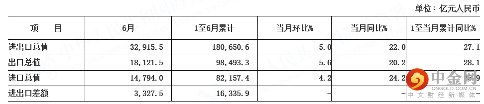 以人民币计,经季节调整后,2021年6月份进出口总值同比增长18.6%,其中出口增长14.7%,进口增长23.8%。以美元计,经季节调整后,2021年6月份进出口总值同比增长30.4%,其中出口增长26.1%,进口增长36.2%。