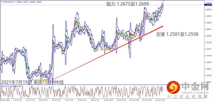 上周五(16日)日本利率决议前瞻称发出长期宽松政策,美日站回110.00关口,大有可能带动多方涨势。上周日(18日)欧佩克草案声明称OPEC+在2022年9月之前,市场条件允许下全面取消580万桶/日减产,今天(19日)油价跌或美元上涨,有望利好美加涨势。